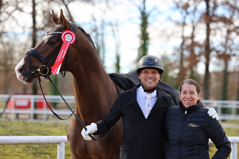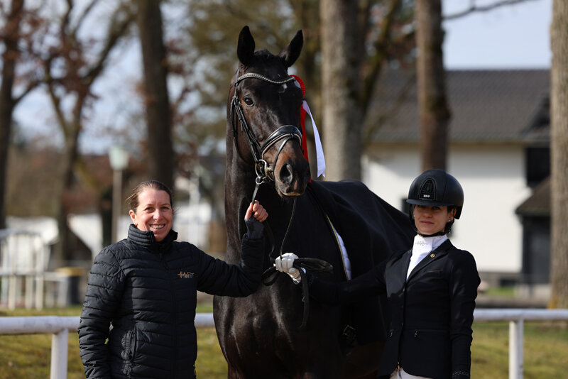 An die Spitze des achtköpfigen Dressurlotes beim ersten Sporttest 2024 in Stadl-Paura setzte sich mit einer bedeutenden Endnote von 8,43 Punkten unser vierjähriger DSP Prämienhengst Fabinho. Gezogen von Hendrik Kösters, Sohn des Fürst Samarant aus der Staatsprämienstute Fiorella nach Florestan I, wurde er von Matthias Bouten vorgestellt.
