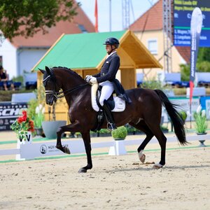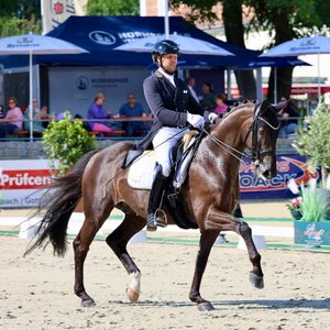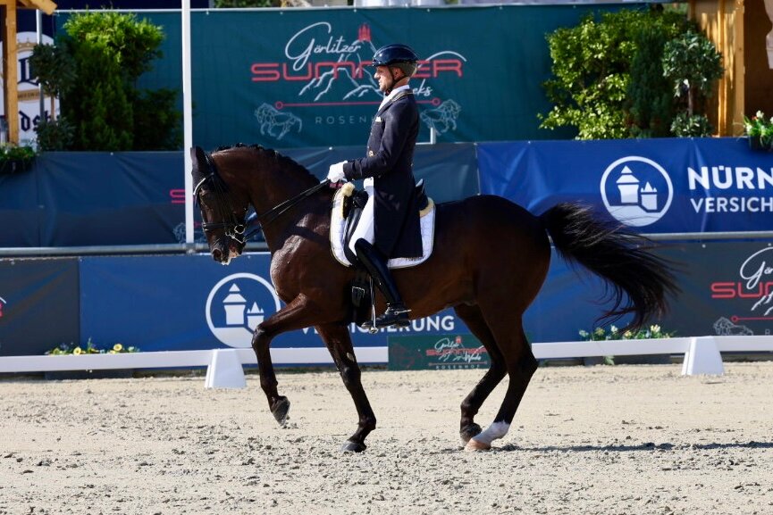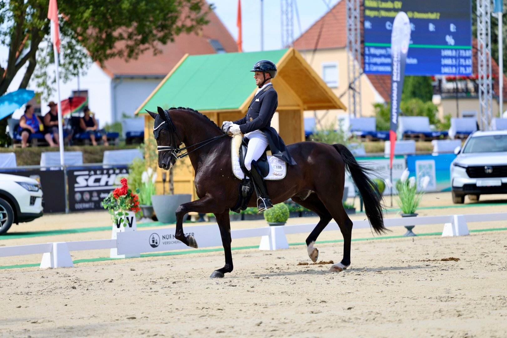 Matthias Bouten präsentierte Nikki Lauda (Negro - Sir Donnerhall I) im Besitz von Gabriela Kargl in beiden Nürnberger-Burgpokal Qualifikationen bei den Görlitzer Summerweeks.