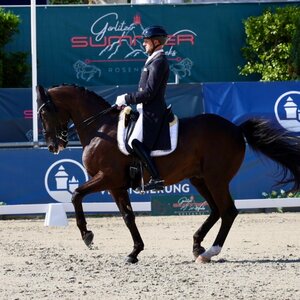 Pramwaldhof's Bellagio sammelte in der Großen Tour weiter Erfahrung und zwei vierte Plätze. Der Grand Prix, noch mit ein paar Fehlern, zeigte unser Beli am Sonntag einen fast fehlerfreien Grand Prix Spezial mit Highlights in den Piaffen und Pirouetten.